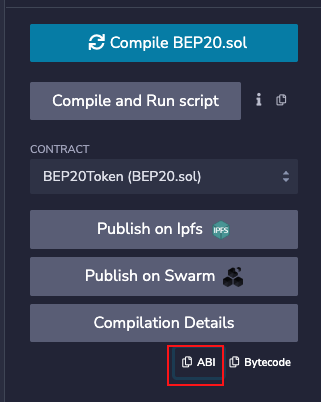 8. [ABI] 버튼을 클릭하여 컨트랙트의 ABI를 복사합니다.